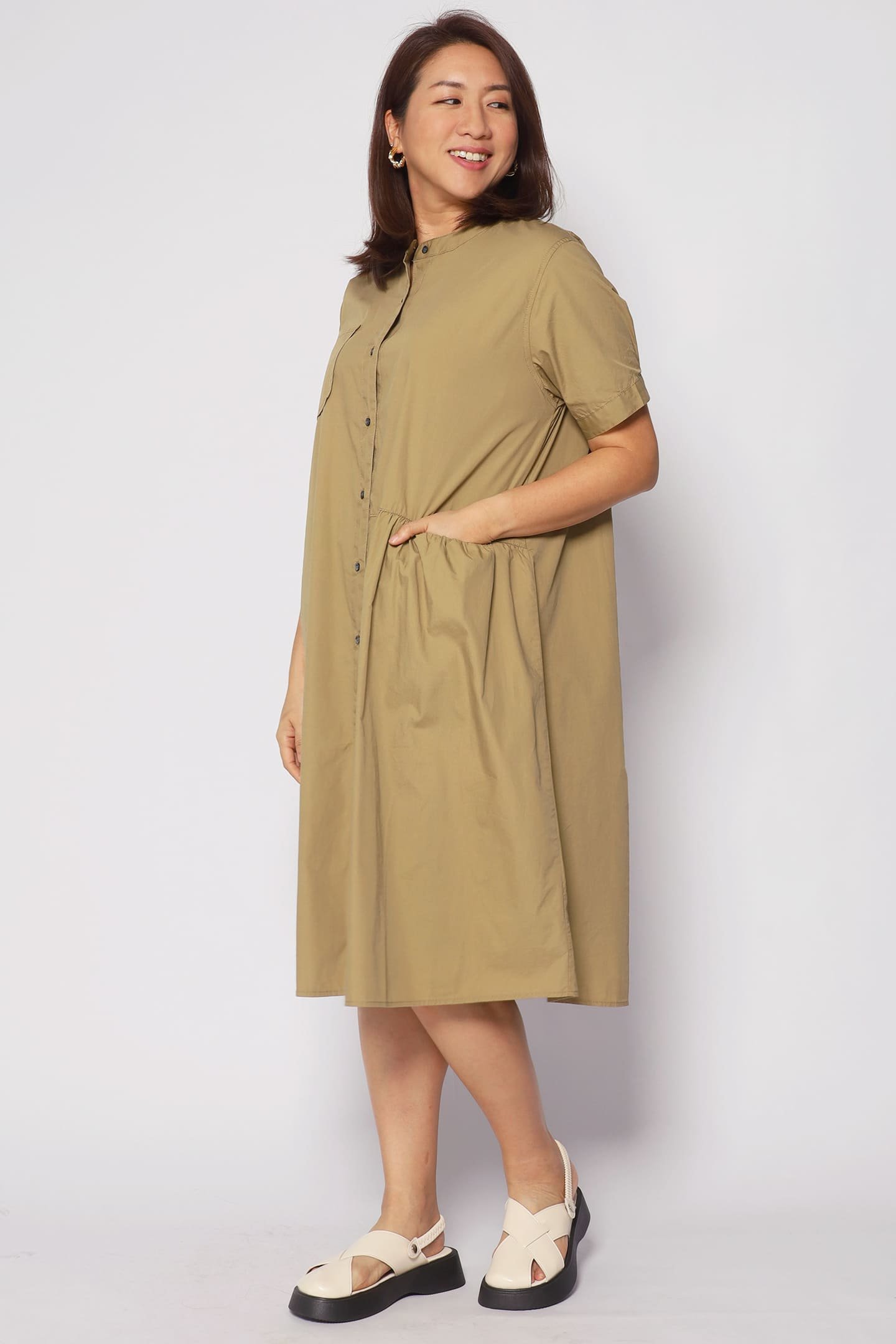 This product is available in one size only.Fits UK8 – UK16 / S – XXLStretchability: 2 / 5 Round neckline Front and One side functional pocket Short sleeves Front button down fastening Comfortable fit Slip in design for easy wearing