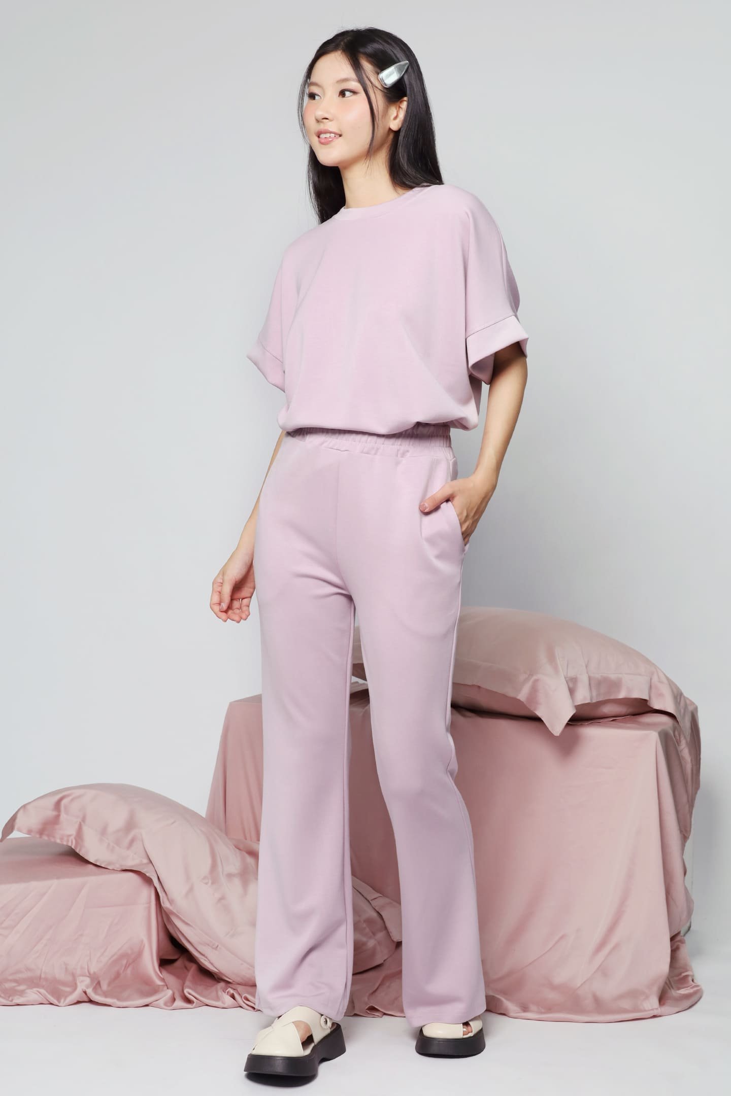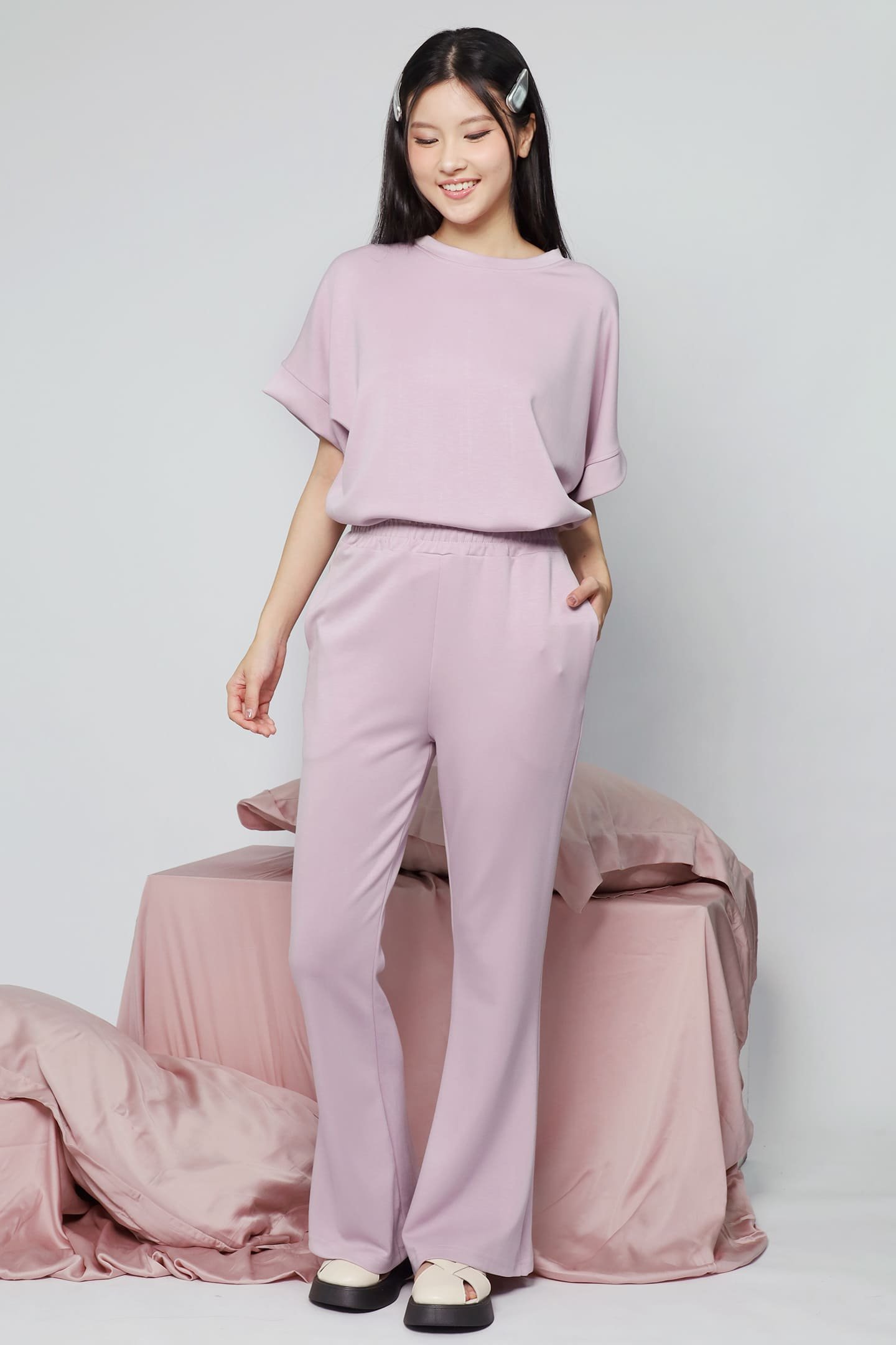- Pants is elasticated along the waist and is stretchable