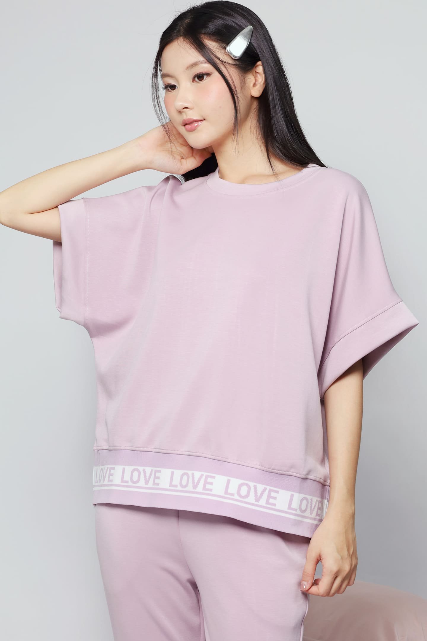 - Top has round neckline. short sleeves styling