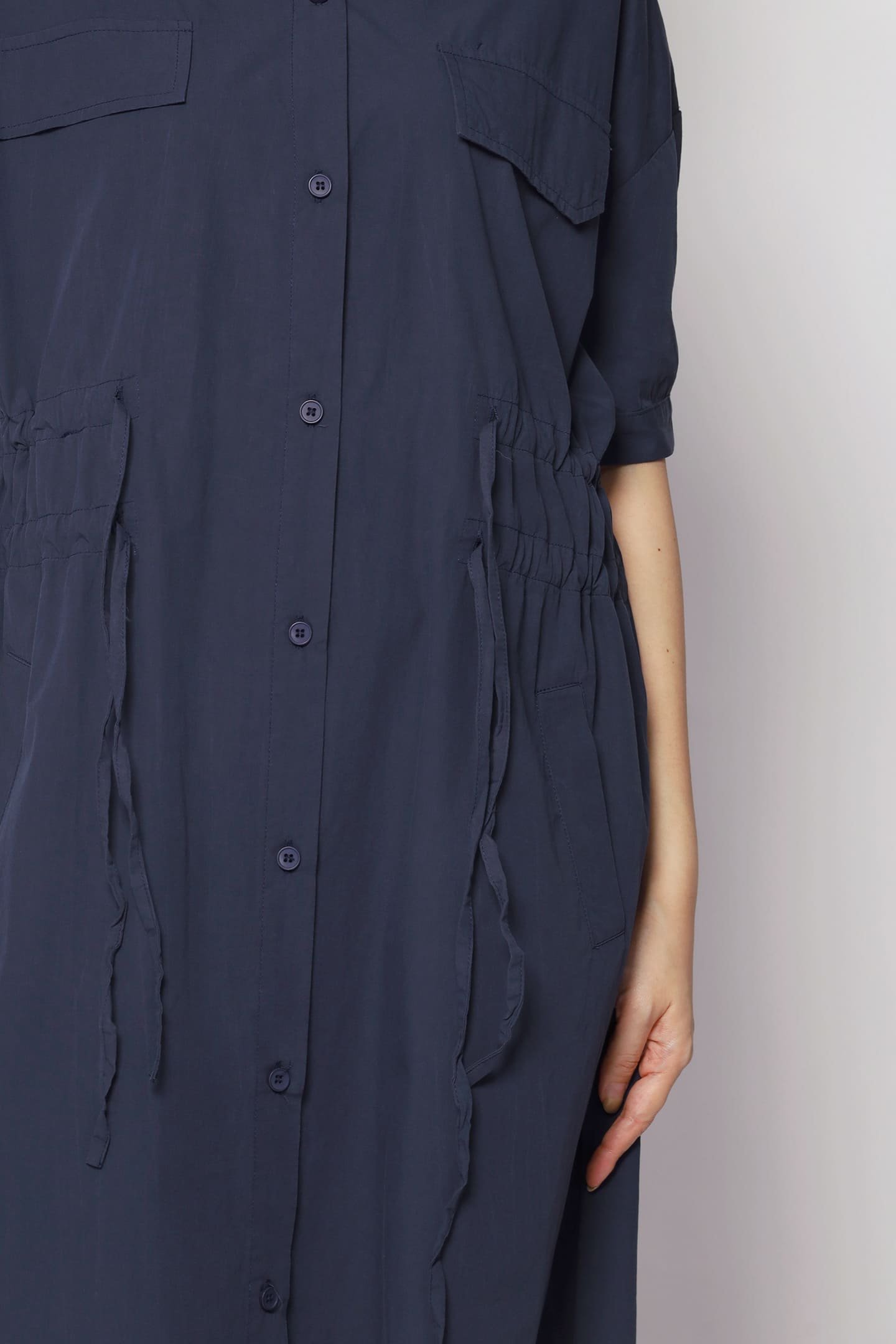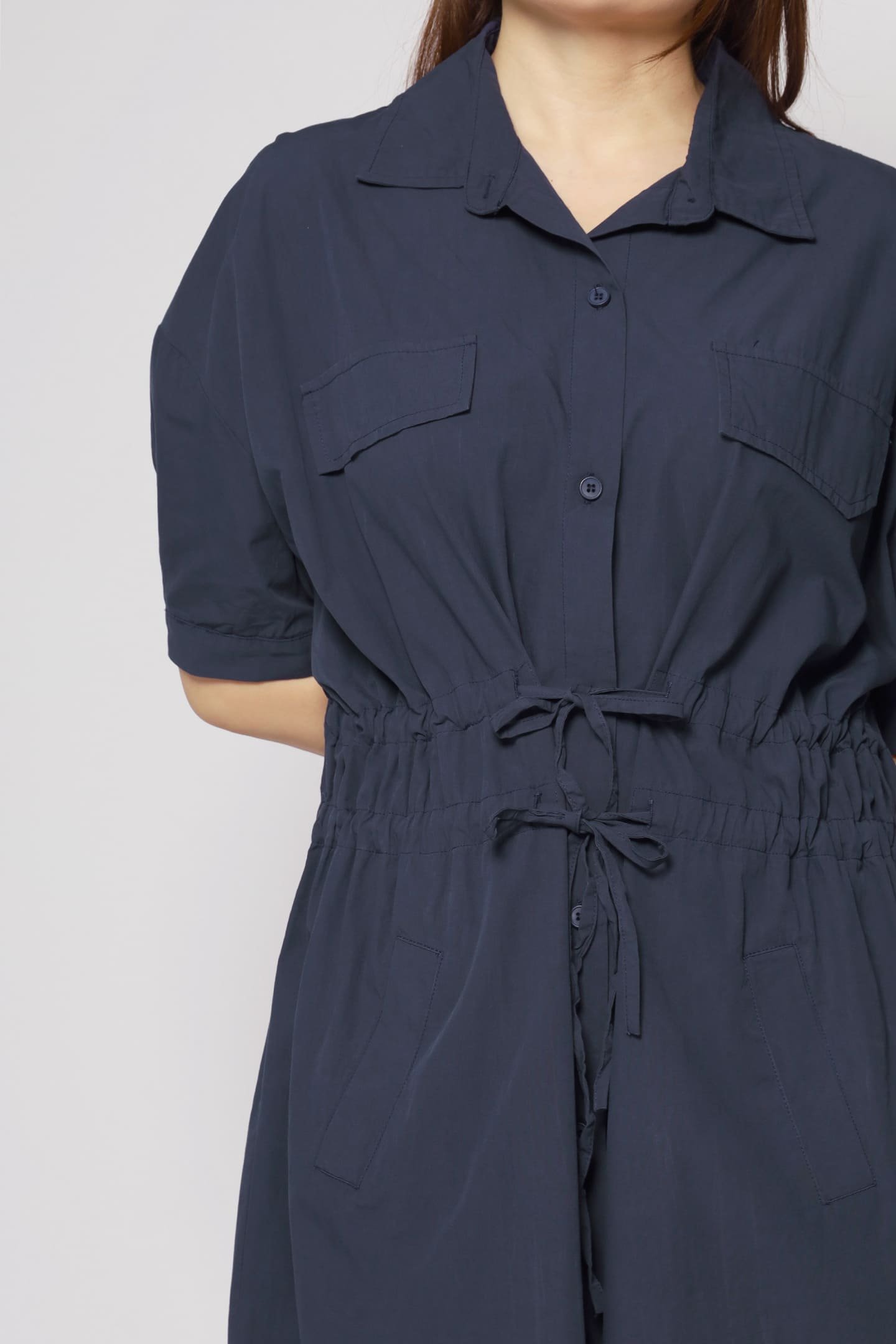 - Double drawstring fastening across waist